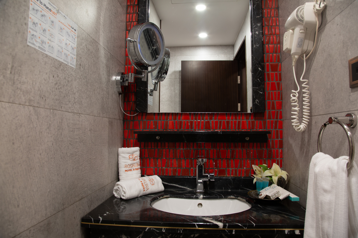 يحتوي الجناح على حمام خاص مجهز بأحدث المرافق، بالإضافة إلى تلفاز بشاشة مسطحة، إنترنت عالي السرعة، منطقة تناول طعام لتلبية احتياجاتك اليومية.